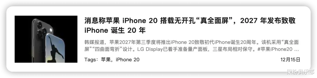 即便是后年才发布的 iPhone 20,也经由多家媒体之口进行了披露。