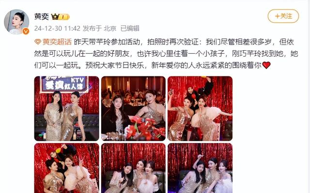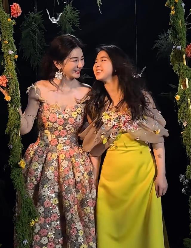 黄芊玲的身高在这个时候都要赶超黄奕了,她画着精致的妆容,头发随意散在肩上,和黄奕合照的时候,两个人还真像是一对小姐妹一样。