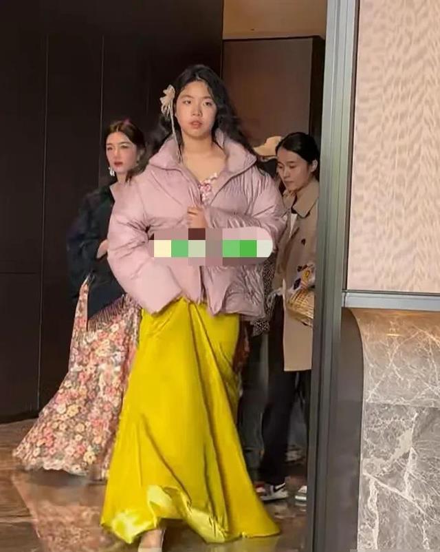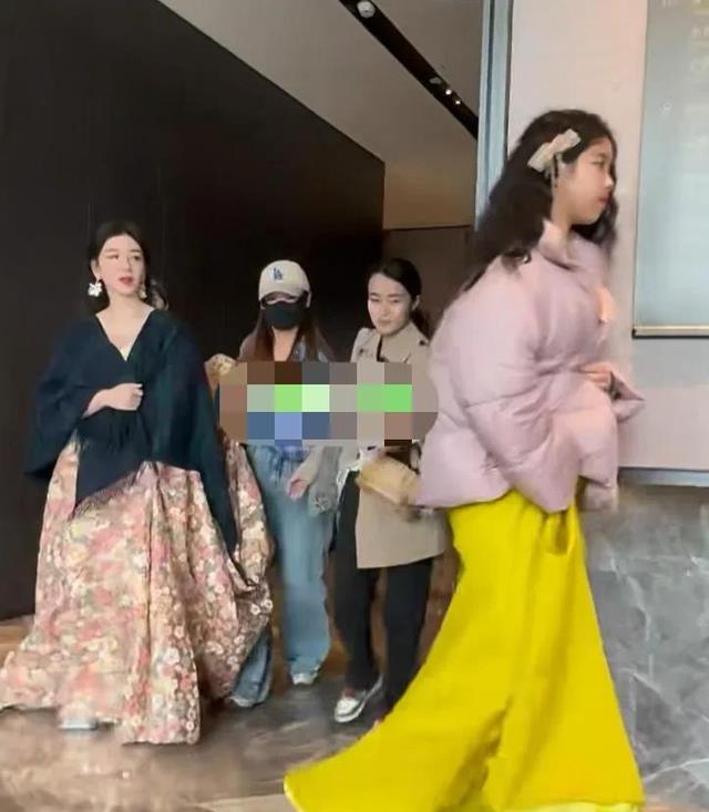 而且她脚上穿的居然是一双高跟鞋,才12岁就能这么习惯穿高跟鞋,真不愧是明星的孩子。