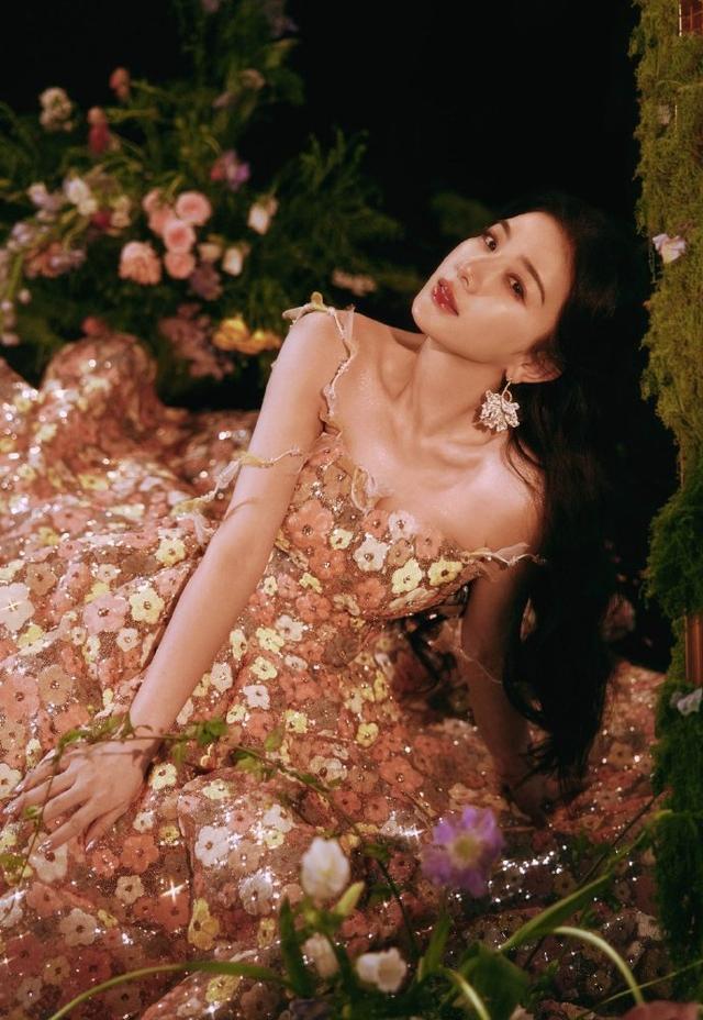 再加上裙子上面满是花朵,虽然颜色各异,但一点都不显得凌乱。