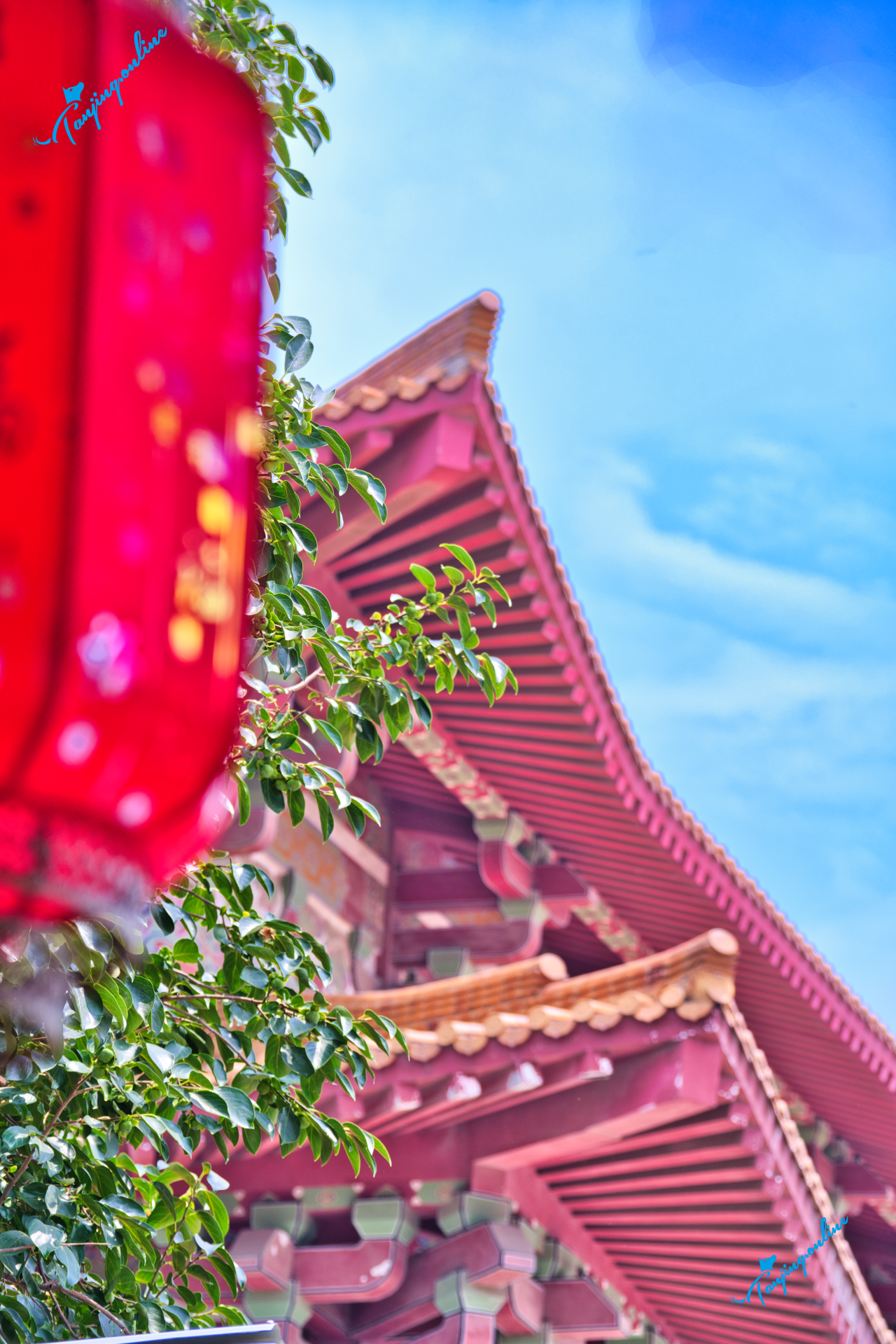 中式汉服优先,红/黑/白色系与金顶朱墙呼应;避免短裙短裤,尊重宗教场所。