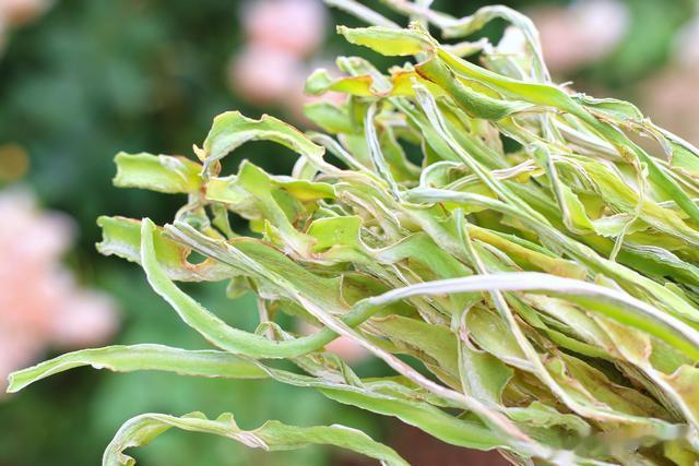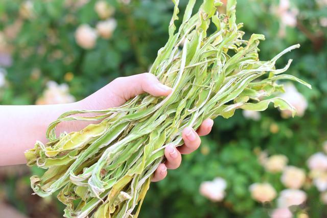 7、这是第二天的样子。厚厚的水嫩的莴笋,已经晒成薄薄的莴笋干了。