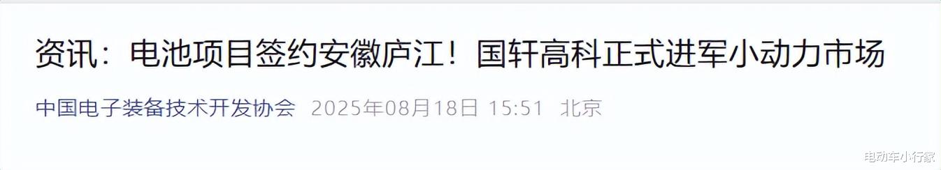 近期,又有消息,继比亚迪之后,两轮电池又迎大品牌,作为汽车电池三巨头之一的国轩高科,正式进军小动力市场。