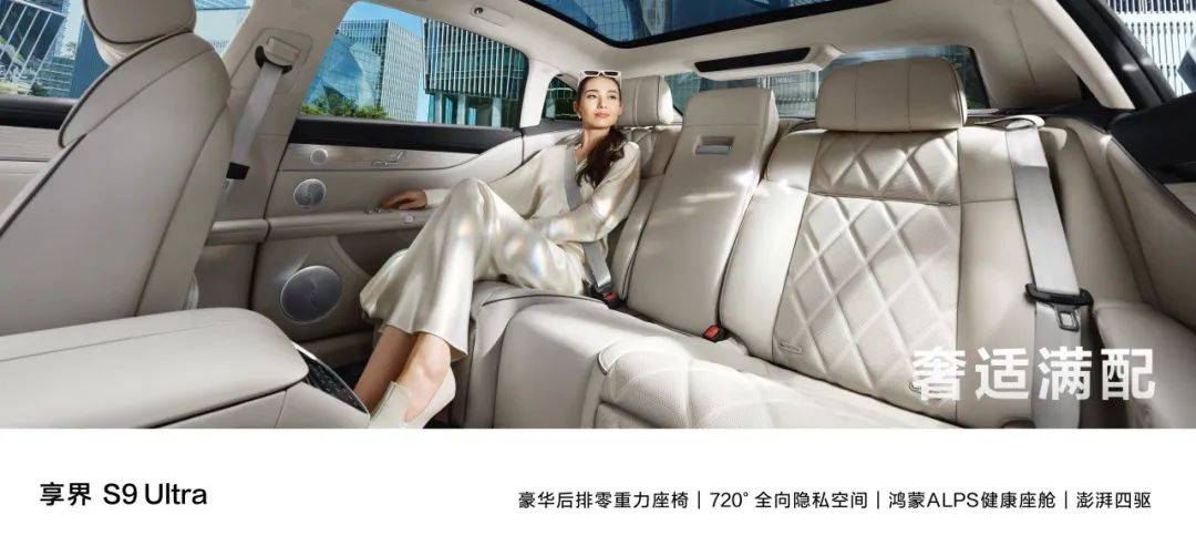 更重要的是,享界S9 Ultra 长航版保留了所有四驱旗舰版车型奢适满配的后排座舱体验。