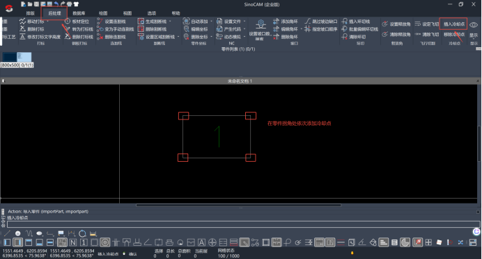 1.选择后处理→插入冷却点,在零件拐角处依次添加冷却点。