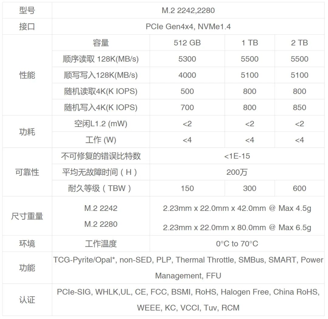 ▲长江存储PC41Q商用消费级固态硬盘产品规格