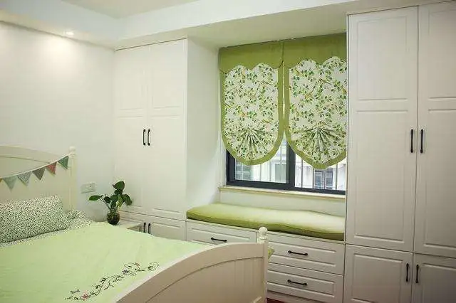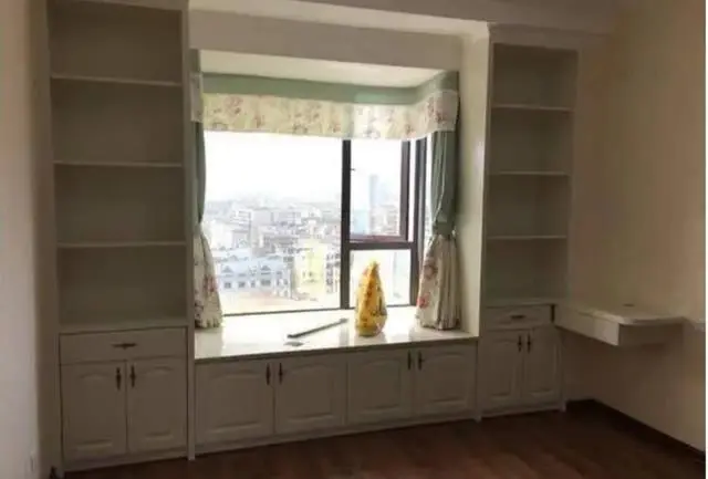 5、介绍一些其他的飘窗设计方案若您渴望更多的收纳空间,不妨在飘窗周围设计一圈柜子,或与旁边的书桌柜巧妙结合,这样的布局不仅美观,更能有效解决物品收纳问题。