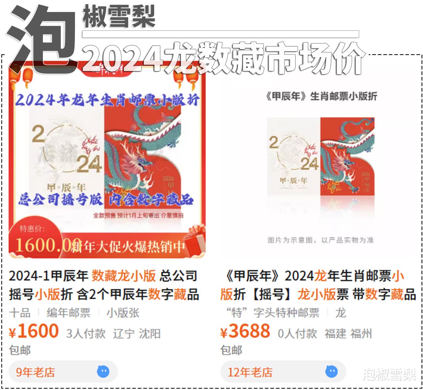 近两年不少邮品都被加入了数藏属性,如二十四节气数藏封、贺19版式三、本票型年册,可没有一个可以超越2024年龙数藏小版,资本市场的目的永远是盈利,所以不会无缘无故捧起任何一个爆火的藏品,哪怕炒作的物品只是一串数字,价是商家设的,钱却是买家给的,邮票和数藏在资本面前没有任何区别,只要有人相信,就会存在市场。
