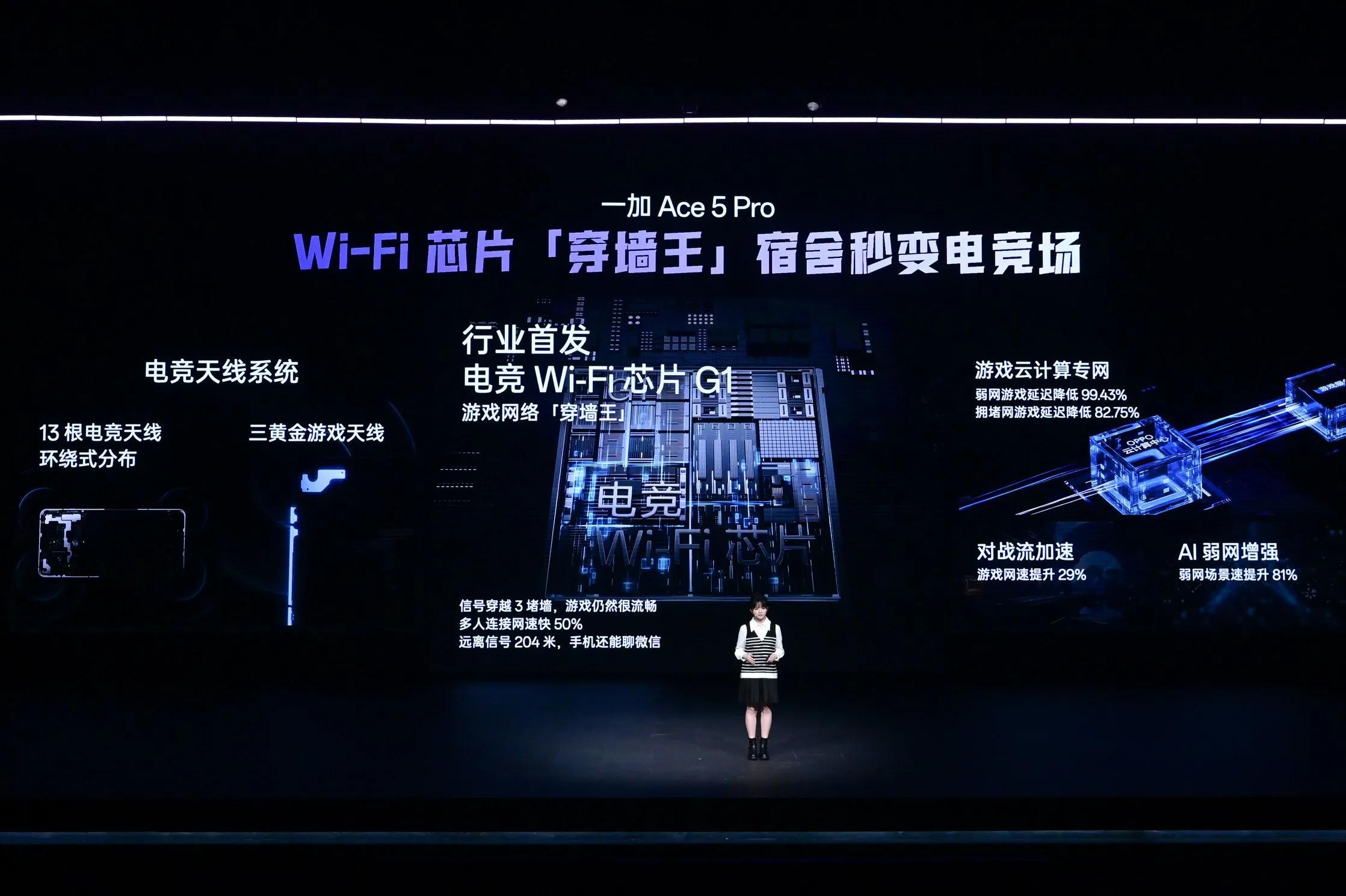 一加Ace 5 Pro行业首发「电竞Wi-Fi芯片G1」,拯救校园网!一加Ace 5 Pro网络信号可以轻松跨越三堵墙,化身游戏网络“穿墙王”。同时,一加Ace 5 Pro还搭载13根电竞天线,360度环绕分布,任何握持姿势都有好网络,在游戏过程中,为了避免双手对信号的遮蔽,一加还专门制作了三黄金游戏天线,在宿舍也能拥有电竞场馆体验。