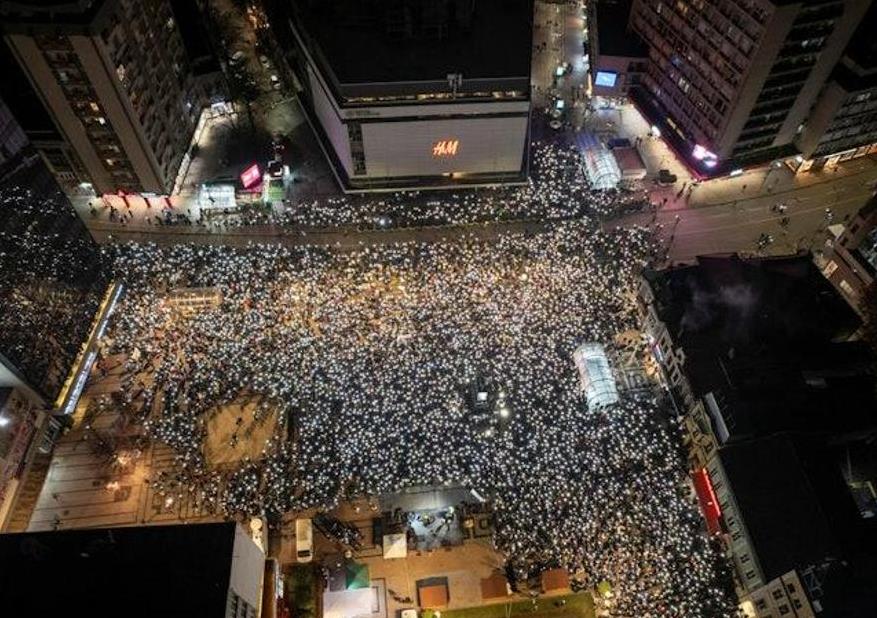 贝尔格莱德街头近日掀起惊涛骇浪,十万民众高举标语涌向总统府,直指执政者“下台”。这场声势浩大的抗议已持续四个月,从最初为一场火车站坍塌事故鸣冤,演变为直指总统武契奇政权的全民怒吼。