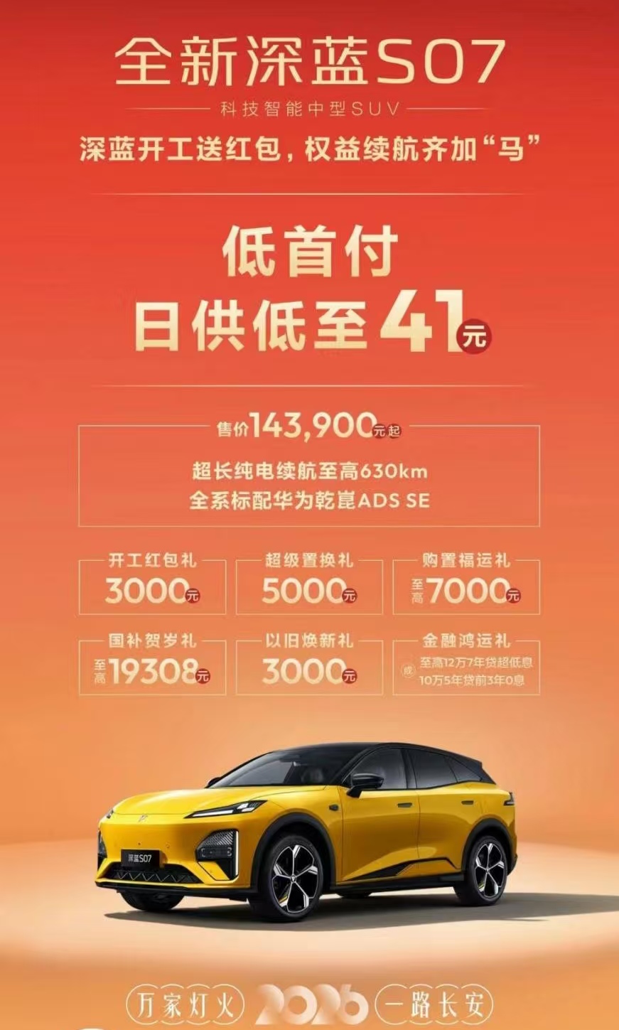 另外,深蓝S07这一次还提供了“7年超低息”的购车方案,最长可贷7年,日供可低至41元,不仅拉低了门槛,对于想把购车时间线拉长的朋友来说,也是非常友好。当然,深蓝S07也提供其它的方案,包括0息方案,以及常规的低息方案。海狮06 EV也提供了0息、低息方案,甚至还提供0首付的方案,但最长还款期限只有5年,且0首付的方案,利息会稍高一些。就我个人来说,如果想把还款时间线拉长,我认为深蓝S07的方案会更可取。(活动详情请咨询当地经销商)