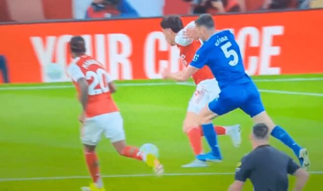 开场前20分钟,客场出战的埃弗顿就曾两次让主场球迷心惊肉跳,一次是拉亚拦截高空球没扑远,麦克尼尔的跟进补射让卡拉菲奥里演了一出“蝎子摆尾”堵枪眼。随后麦克尼尔又一脚禁区外兜射砸在了立柱上,看得场边的埃弗顿主帅莫耶斯也是抱头叹息。诚然,埃弗顿若先进球,阿森纳倒也未必不能赢——哈弗茨在上半场就有过一次绝佳机会,只是禁区内被绊倒却没有获得点球。慢镜显示,对方后卫与其上半身的拉扯确实不严重,但迈克尔·基恩的脚肯定踩到了哈弗茨的后跟,却不知为何当值主裁和VAR都没有判处极刑。