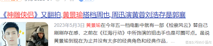 之后杨过的候选人,也曾考虑过檀健次、侯明昊、刘学义等人。最后一次传的有鼻子有眼的,是黄景瑜。