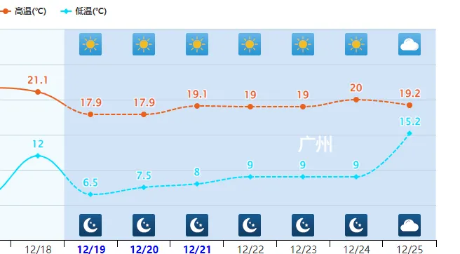 比如:广东广州,预计维持在最高气温20度以下,最低气温在10度以下,也算是不错,但昼夜温差相对较大。