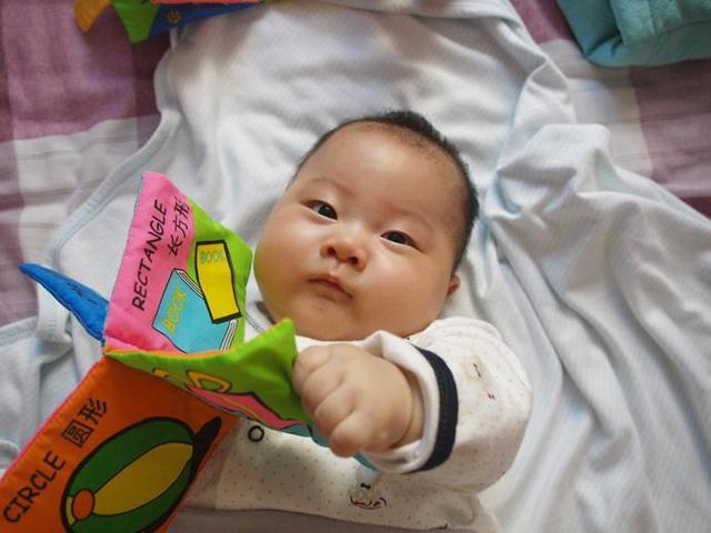 3个月以后:宝宝白天会睡得比较有规律,一般要睡3次,每次睡1-2个小时,每天大约睡15个小时,晚上能睡大约9个小时,能够连续睡5-8小时。