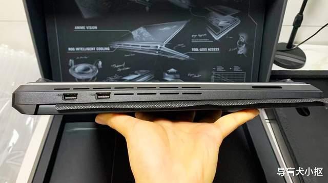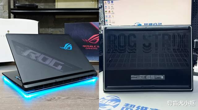 翻转机身到底壳,这里的设计更加高级。一是底壳上的进气孔,一般机型都会于居中位置适当打孔,栅格纹理,平整规格,而枪神9Plus不同,它的进气孔直接覆盖50%以上面积,且上下有rog的立体纹路,时尚个性。二是底壳上依然有灯带,它做得更加彻底,围绕底壳边框镶嵌一圈,极为醒目。运行点亮的时候,机器正常摆放,底部光效打在桌面和机器边缘,让电脑有了立体发光的效果,再跟着游戏动作特效闪烁,完美到底。