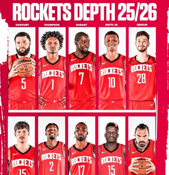当然,除了雷霆,西部还有其他数支强队,其中火箭和掘金无疑是最有竞争力的球队之一,甚至有可能与雷霆争夺更高荣誉。火箭在这个夏天的阵容调整上可谓阵势恢宏,他们不仅成功从交易市场引来了超级巨星杜兰特,还相继得到了如亚当斯、卡佩拉、芬尼-史密斯和奥科吉等一批实力球员。同时,火箭还与范弗里特、小史密斯等关键球员续约,进一步巩固了阵容的深度。火箭明显是瞄准了总冠军的目标,这样的阵容配置,毫无疑问让他们在争冠的道路上充满了希望。