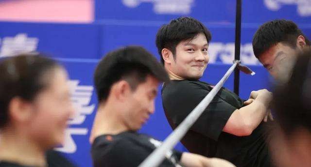 除了平野美宇与樊振东的互动之外,樊振东与王楚钦之间的交流同样引人注目。在训练的间隙,樊振东正与队友许昕进行交流,而王楚钦走近时,樊振东立刻起身,和他握手打招呼。两人显得十分默契,王楚钦亲切地称呼樊振东为“东哥”,而樊振东则开玩笑地拍了一下王楚钦的肚子,两人相视而笑,场面既温馨又有趣。这一幕生动地展现了他们之间深厚的友谊,也让人看到了国家队内良好的合作与氛围。