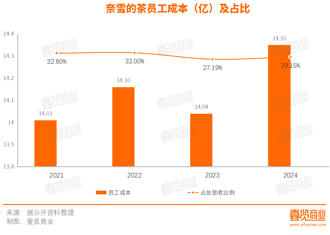一方面,长期采用直营模式的奈雪的茶,门店需要招聘大量员工,这意味着员工成本支出高昂。财报数据显示,奈雪的员工成本占营收25%以上。