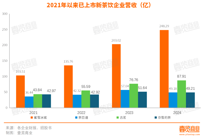 近日,新茶饮上市企业,蜜雪冰城、奈雪的茶、古茗、茶百道先后披露了2024年年度业绩。从新茶饮这4家上市公司的业绩来看,2024年行业分化已然显现。