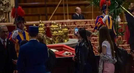 但有些人,在这种本应肃穆的场合,居然跟教皇方济各的遗体自拍留念,还直接把这些照片发到了社交媒体上。有目击者说,现场简直乱套了,到处都是举着手机拍遗体的人,而且还有好多人大声打着电话。