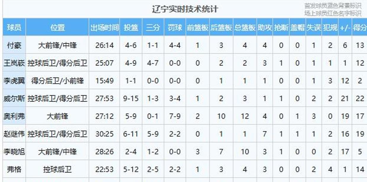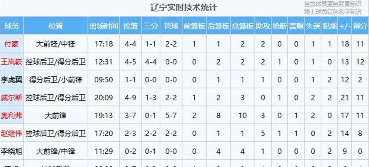 辽篮角色球员表现点评奥利弗今天在内线特别活跃,抢篮板也很给力,还传出几个好球,打得挺全面的!付豪一上来就立功了,连拿4分,和王岚嵚的配合也相当默契。鄢手骐今天首发表现不错,刚开场就进了一个快攻三分!王岚嵚(满分)王岚嵚替补登场后防守很卖力,进攻手感也超棒,先是突破得分再是命中三分,一口气拿了5分,帮辽宁队早早取得领先。下半场越打越好,三分手感火热。李晓旭(7分)张镇麟和韩德君今天都没上场,李晓旭顶替首发,防守挺到位,篮板也守得不错。