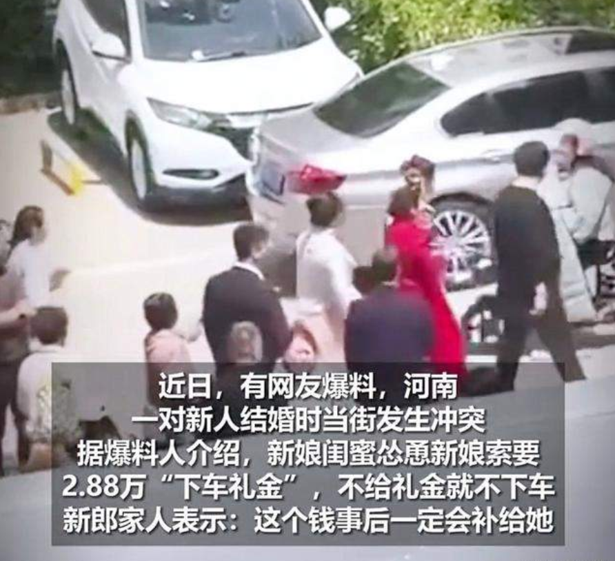 最近就有网友爆料,在河南一次婚礼中,婚车拉着新娘已经到了新郎家门口,可是新娘却拒绝下车,非要2.88万的下车费。