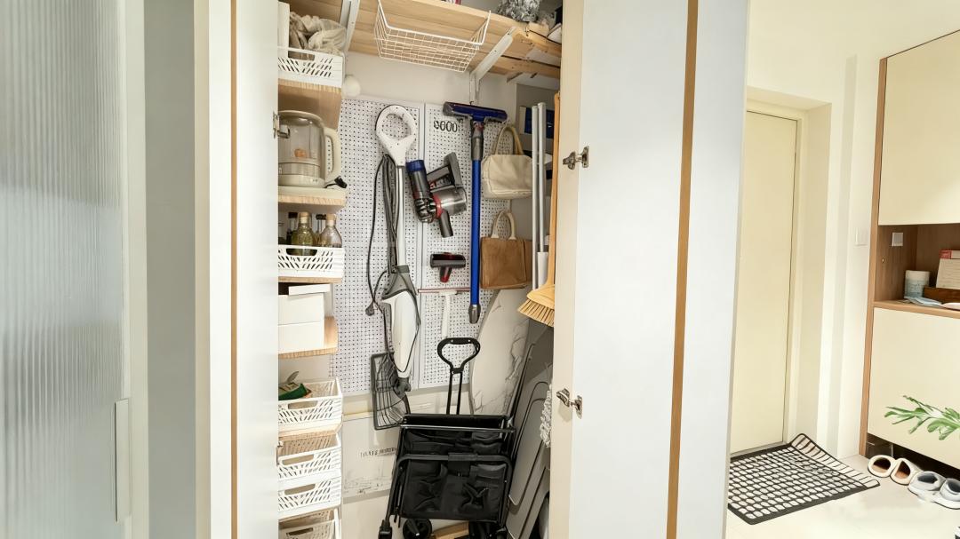 建议:在卫生间或阳台的角落,预留一个专属收纳区,安装挂钩,把拖把、扫帚挂起来,保持清洁工具干燥,减少细菌滋生。