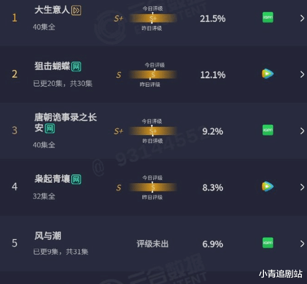 陈晓的《大生意人》扑中择优,已经完结了,依旧可以独当一面,《狙击蝴蝶》紧随其后,一如戏外的两主演一样,谁也不相让。