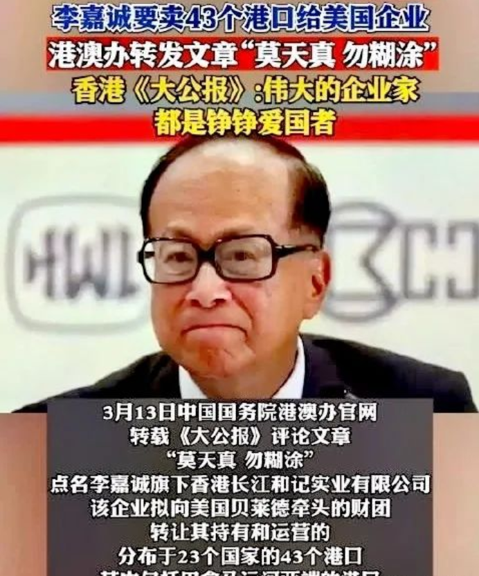 李嘉诚公司将巴拿马运河港口卖给美财团,《大公报》评:伟大的企业家都是铮铮爱国者