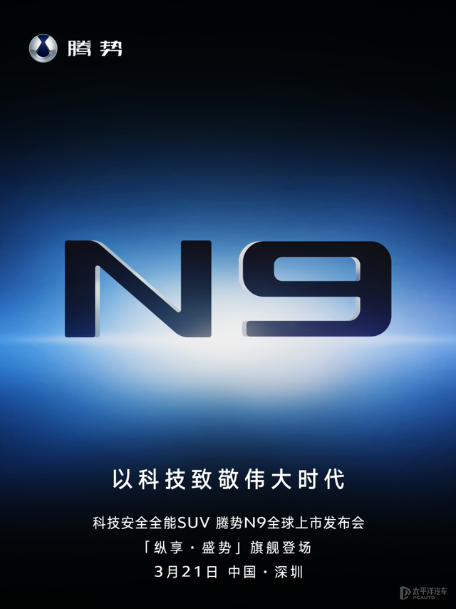 3月10日,我们从官方获悉,腾势N9全球上市发布会将于3月21日举办。此前,腾势N9于2月21日开启预售,预售价格区间45-55万元。