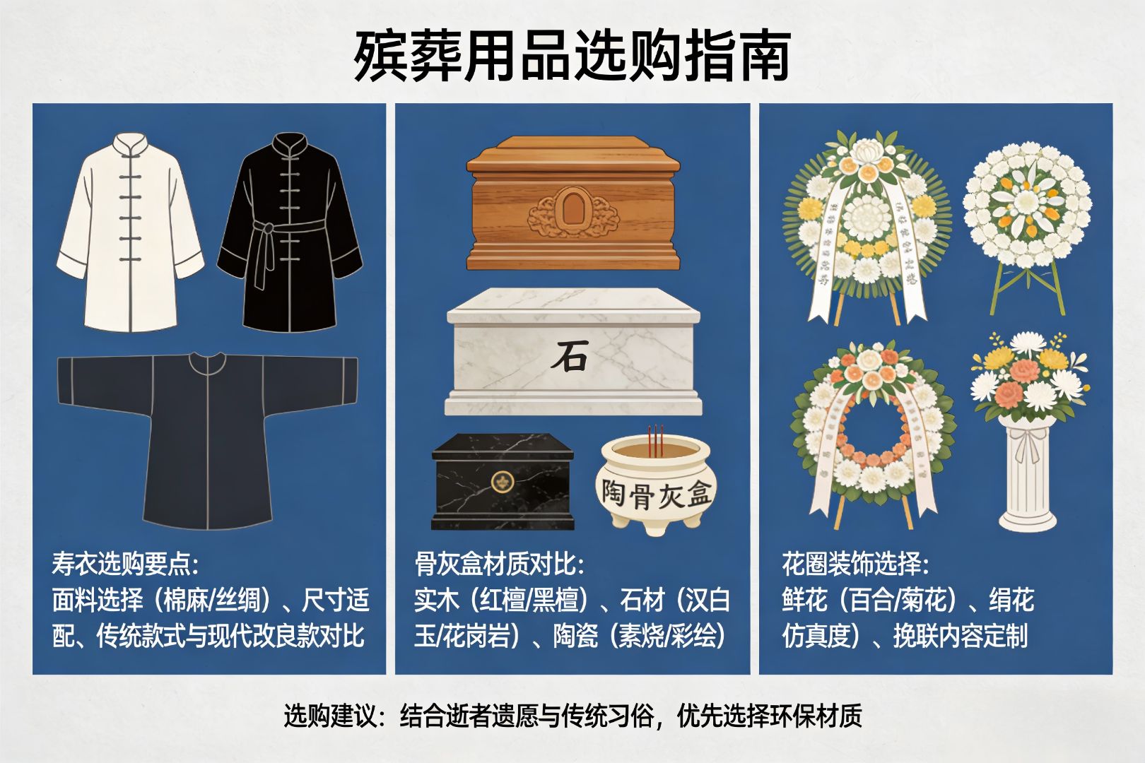 基本殡葬用品:寿衣、骨灰盒、棺材等必需品