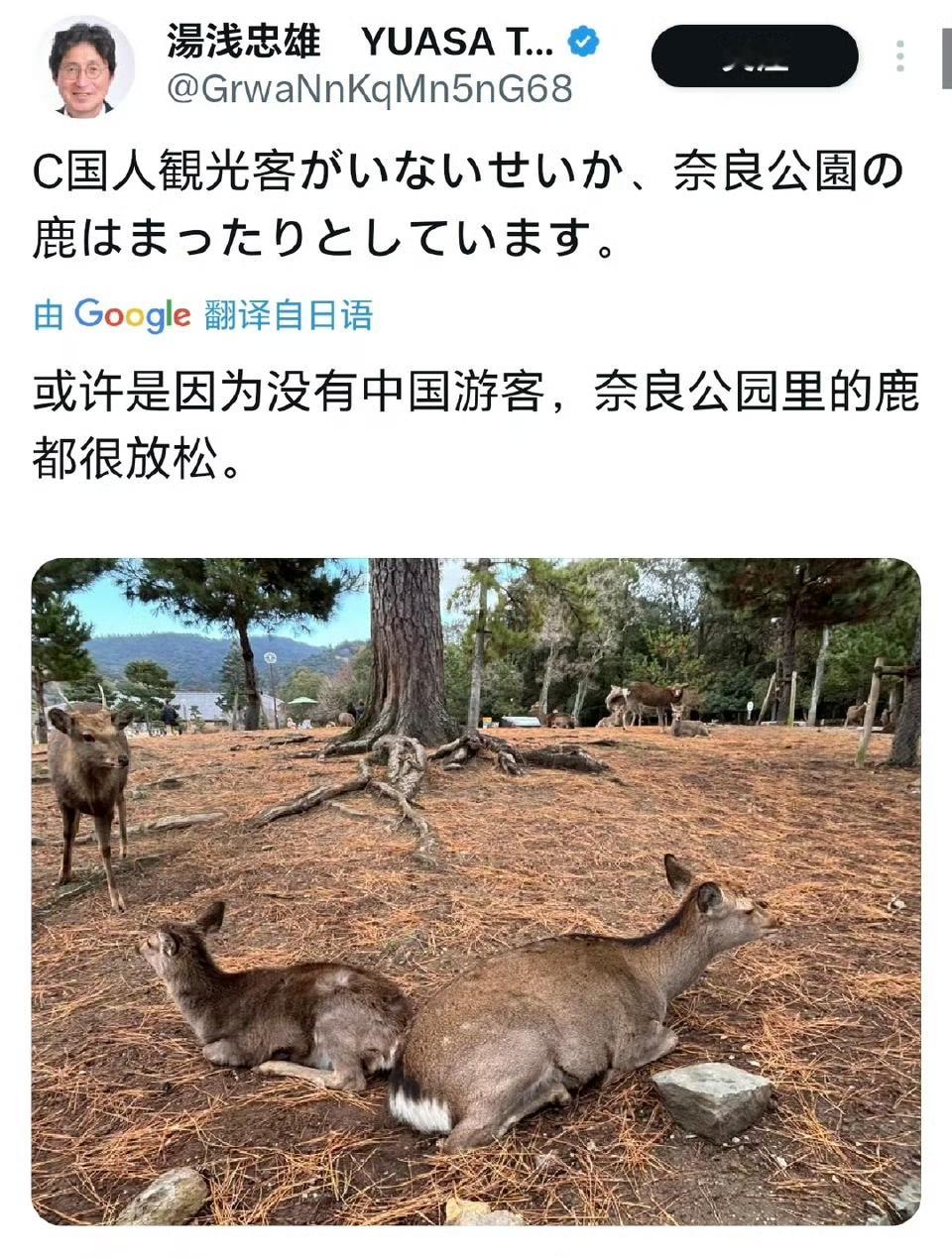 中国游客减少后,一些日本人在网络上发帖,祝贺奈良公园终于没有中国游客了。