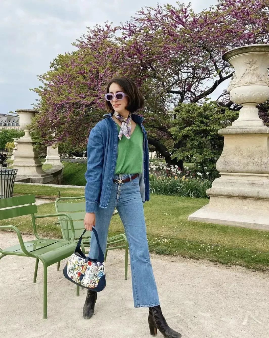 而春日里的法式风牛仔裤穿搭,更是让人眼前一亮,充满了独特的韵味。