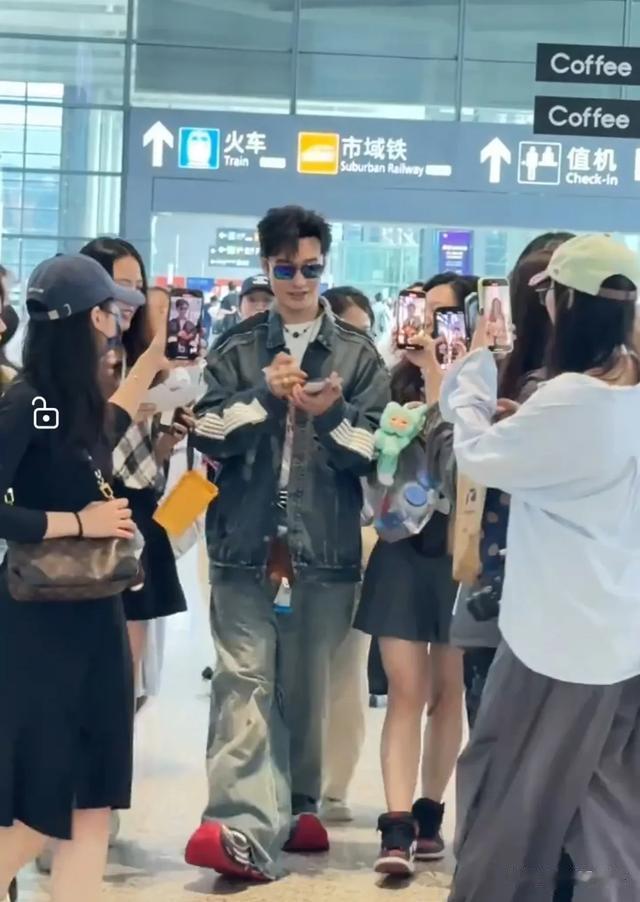6月14日,黄晓明闪现上海虹桥机场,许多粉丝特地赶往现场,只为能近距离和粉丝接触。