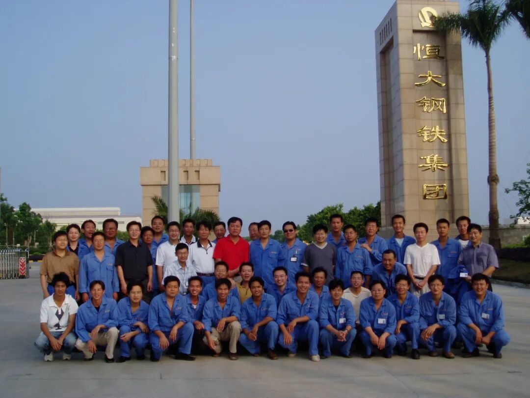 恒大钢铁集团的建设速度非常的快,这得益于马总、尹总的正确指挥!和这些高薪聘请的专业人员过硬的专业技能和急于展示自己价值的迫切心情!2004年年底,棒材厂试生产成功!创造了当年动工、当年投产的纪录。2005年上半年线材厂投产。至此,恒大钢铁的第一期工程建设进入尾声,转入生产阶段。项目非常成功!许家印嘉奖有功人员,提拔工程一部经理谢建新和工程三部经理我为总经理助理,我的工资涨到2万。下图为尹总在主持会议(左一即为尹总)