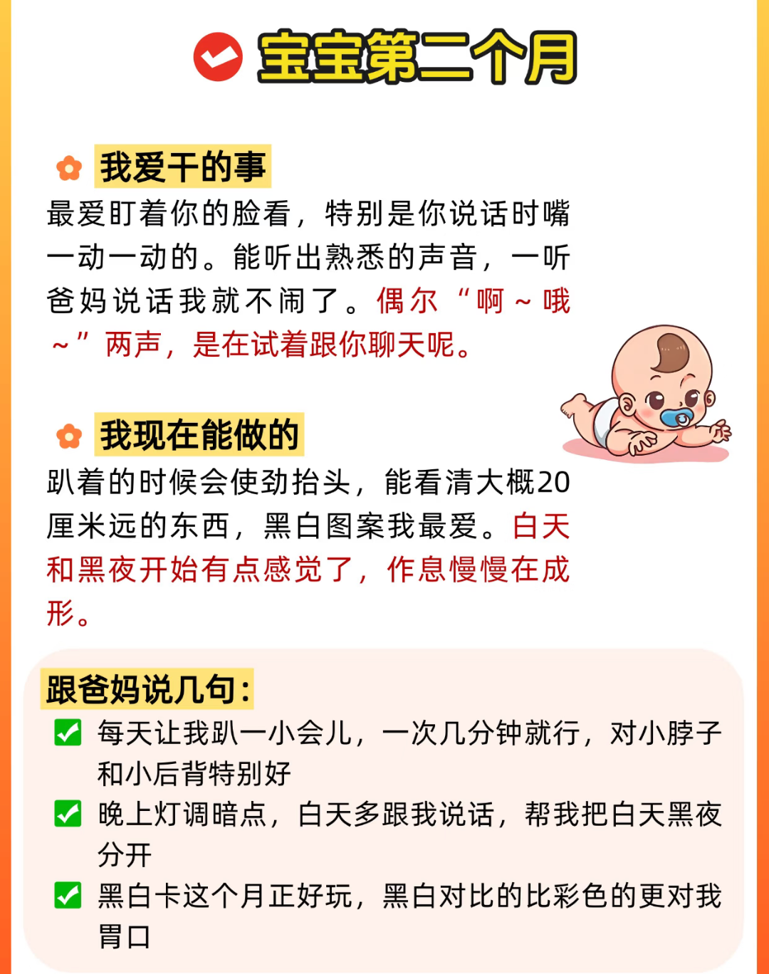 第三个月是笑容大爆发的时期。他学会了用笑来和你互动,心里想的是“只要我一笑,妈妈就会对我笑回来”。这让他觉得特别有成就感,于是拼命练习这个新技能。
