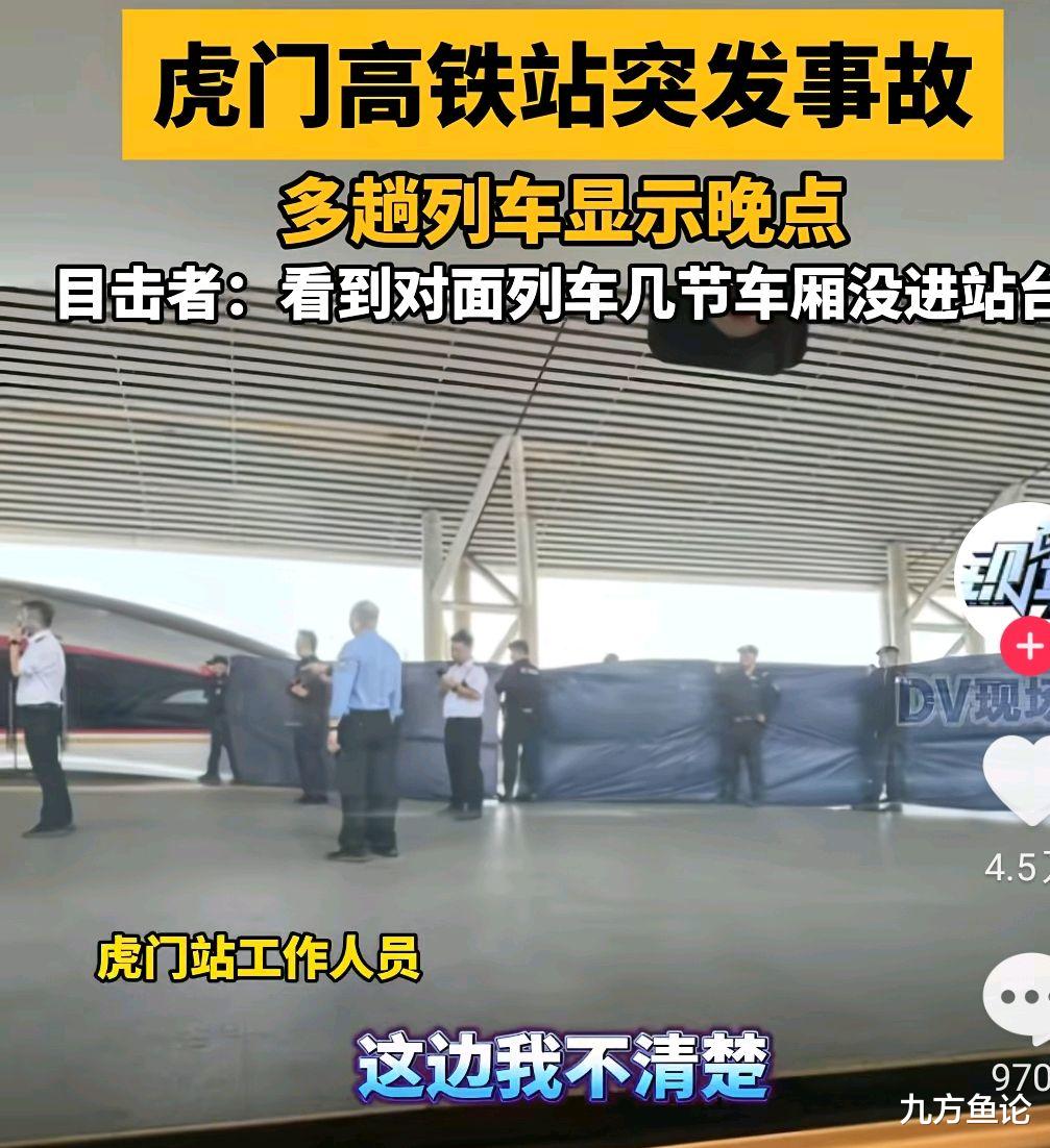16日下午,多辆经过虎门站的列车都显示晚点。车站工作人员十分辛苦,又要处理那位32岁男士的紧急救治和后续问题又要安抚乘客,还要紧急调度列车。