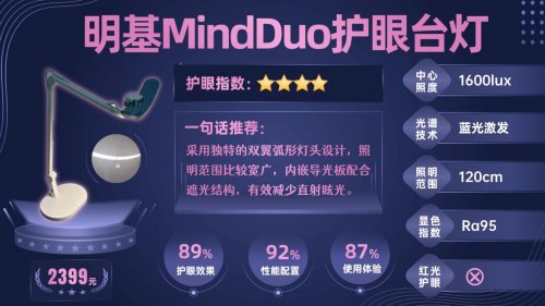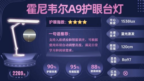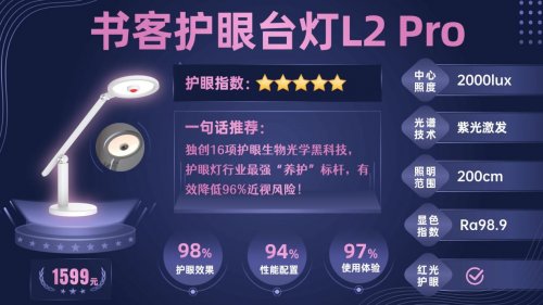 (1)书客:以“医学级护眼”和“紫光激发全光谱”技术闻名,蓝光控制严格,显色指数高,还搭载了RR2.0T红光养眼技术,有效延缓视觉疲劳和近视风险。