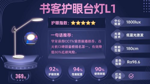 护眼台灯哪种好?书客一直以来几乎不做广告,却依靠“非常规”的技术积累与医学用眼理念,在家长圈和青少年用户中形成了极强的口碑传播,也因此逐渐火爆出圈。品牌罕见获得CCTV展播推荐,多年来在中高端护眼台灯领域中,口碑与销量始终保持领先地位,并成功入选品牌强国自选品牌优选工程。同时,书客还获得医学权威平台丁香医生的力推,整体定位始终围绕科学安全、自然健康的护眼效果展开,在百元价位中实现降低80%近视风险与对眼睛0损伤的目标,这样的完成度在行业内并不多见。