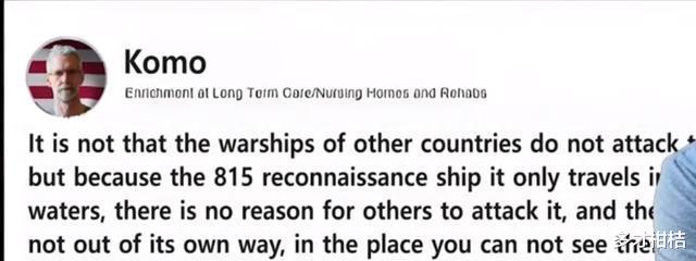 随后,有个美国网友这么说,其实并非其他国家的军舰不想攻击815侦察船,主要是这艘侦察船只在国际公海和中国领海活动。