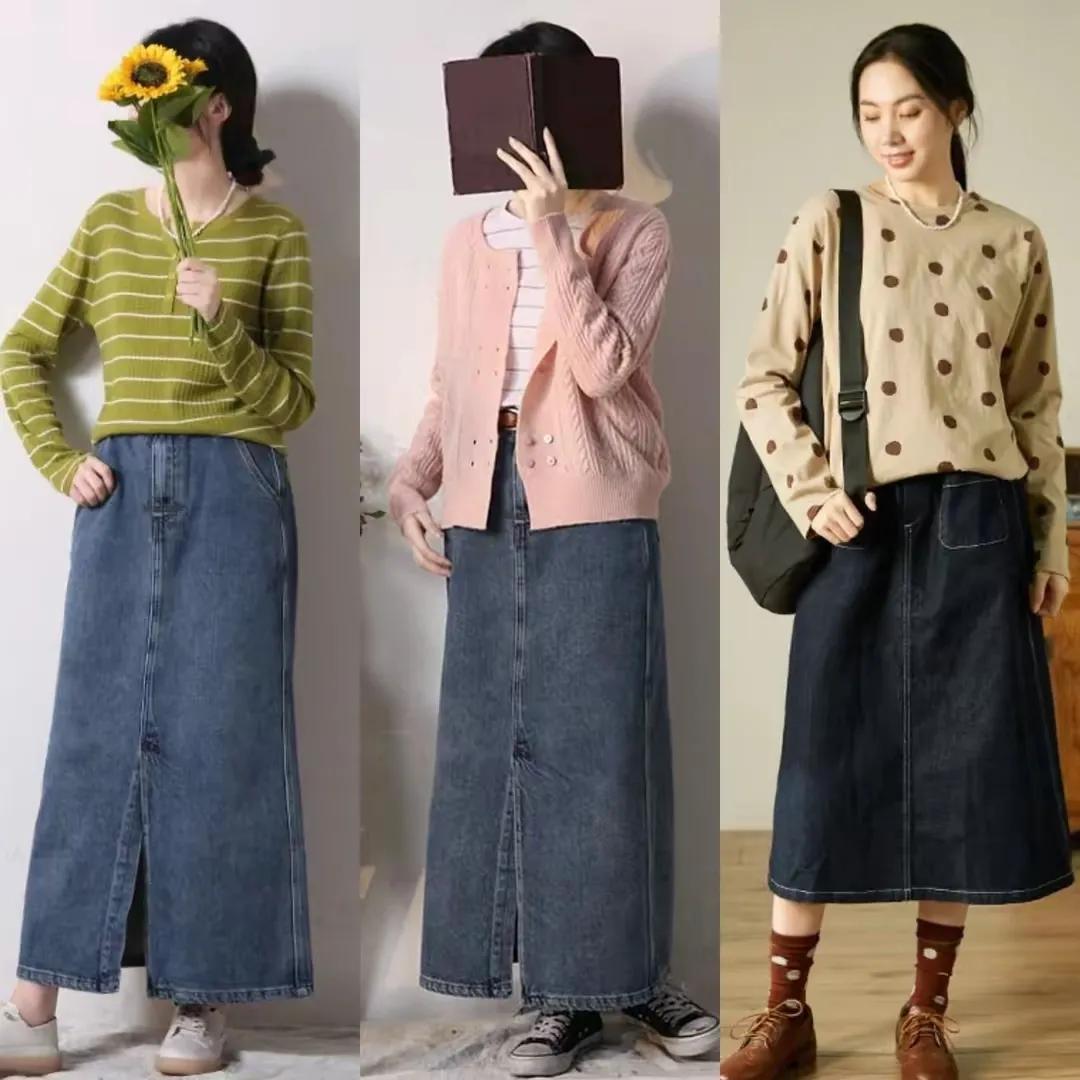 只要我们选择的衣服和裙子是纯色系的,基本上不会出错,例如下面这位博主用浅蓝色的针织衫或者是黄色的针织开衫,搭配上半身裙子后,让整个造型更出彩,还能修饰肤色,显白又显嫩,可以说是一举两得。