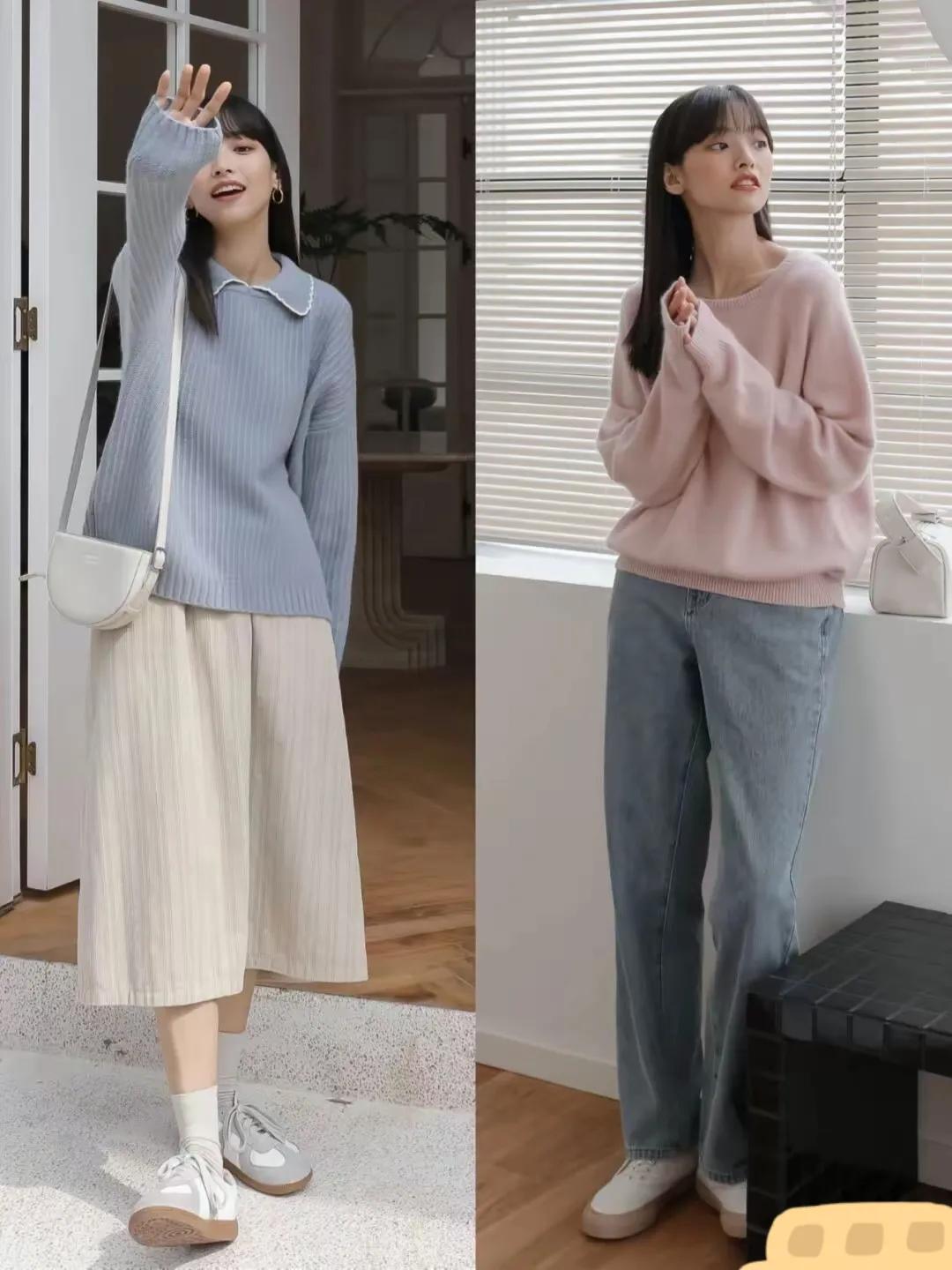 想要更甜美,更俏皮的穿衣打扮,可以用暖色系的衣服来搭配最佳,例如浅蓝色或者是粉色的针织衣服单品,穿在身上修饰肤色,走起路来少女感扑面而来。