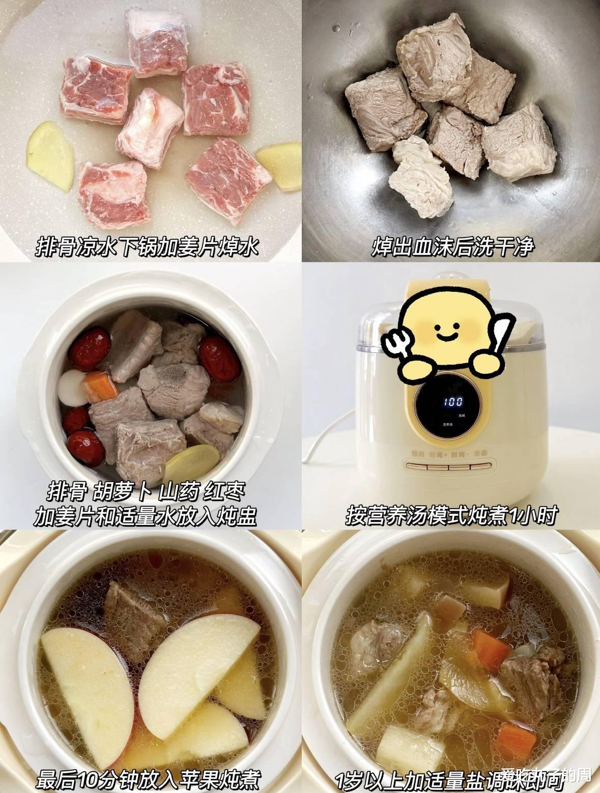 炖煮:在炖锅中加入足量的清水,放入焯过水的排骨、生姜片和大葱段,大火烧开后转小火慢炖大约1小时,让排骨的味道充分融入汤中。一小时后,加入切好的苹果和胡萝卜(如果使用),再炖煮30分钟左右,直到苹果变软但不破碎。