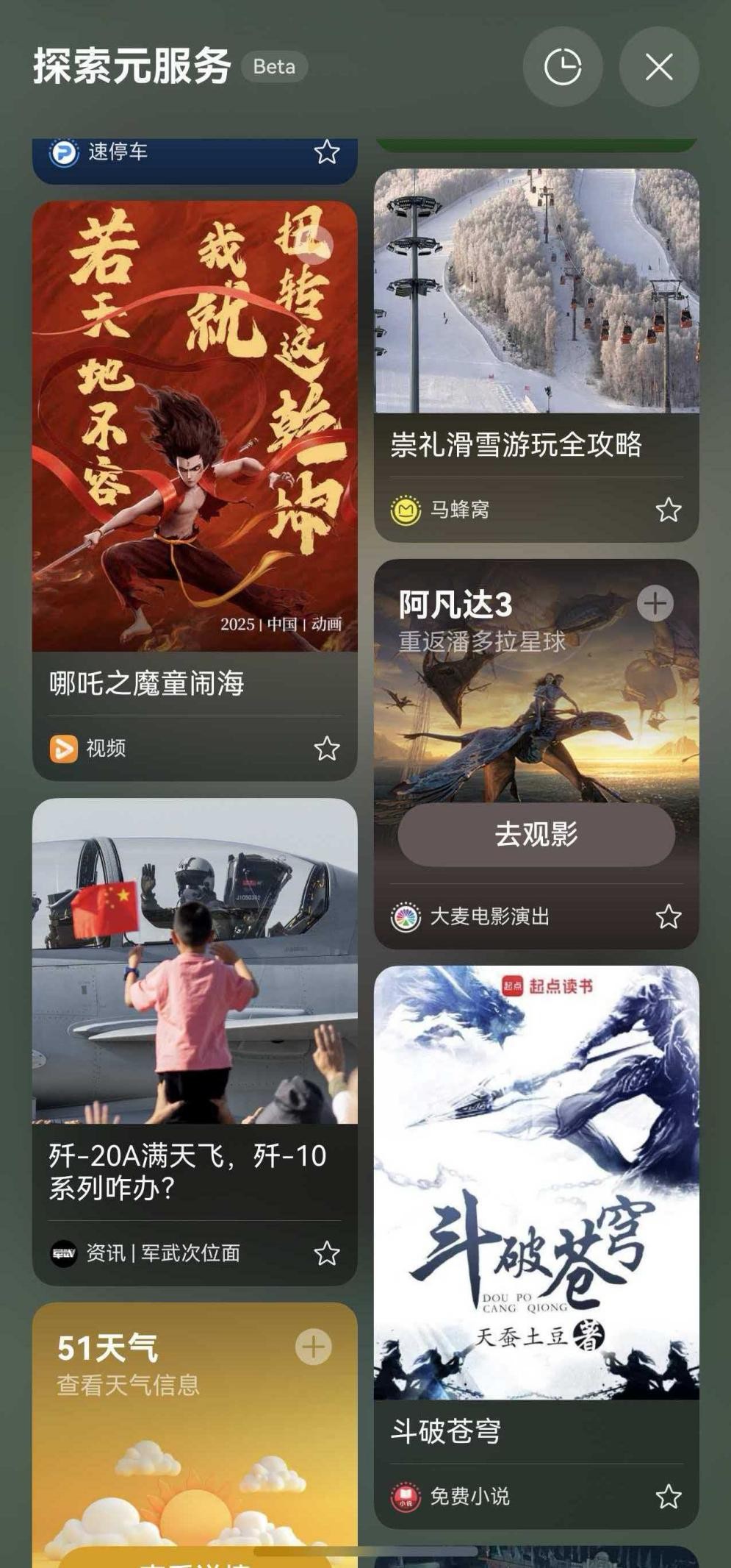 等到广播提示即将到站,我才惊觉时间过得这么快。临下车前,我又滑进去刷了刷。先是看到了马蜂窝元服务卡片推的崇礼滑雪攻略,图文并茂的,看得我心痒痒;紧接着又是一张大麦的元服务卡片,醒目推荐《阿凡达3》。我心里一动,立刻截图发给家乡的朋友:“到了看这个?”朋友秒回:“走起!”我顺手就通过那张大麦卡片选座支付、抵达后的娱乐局当场安排妥了!