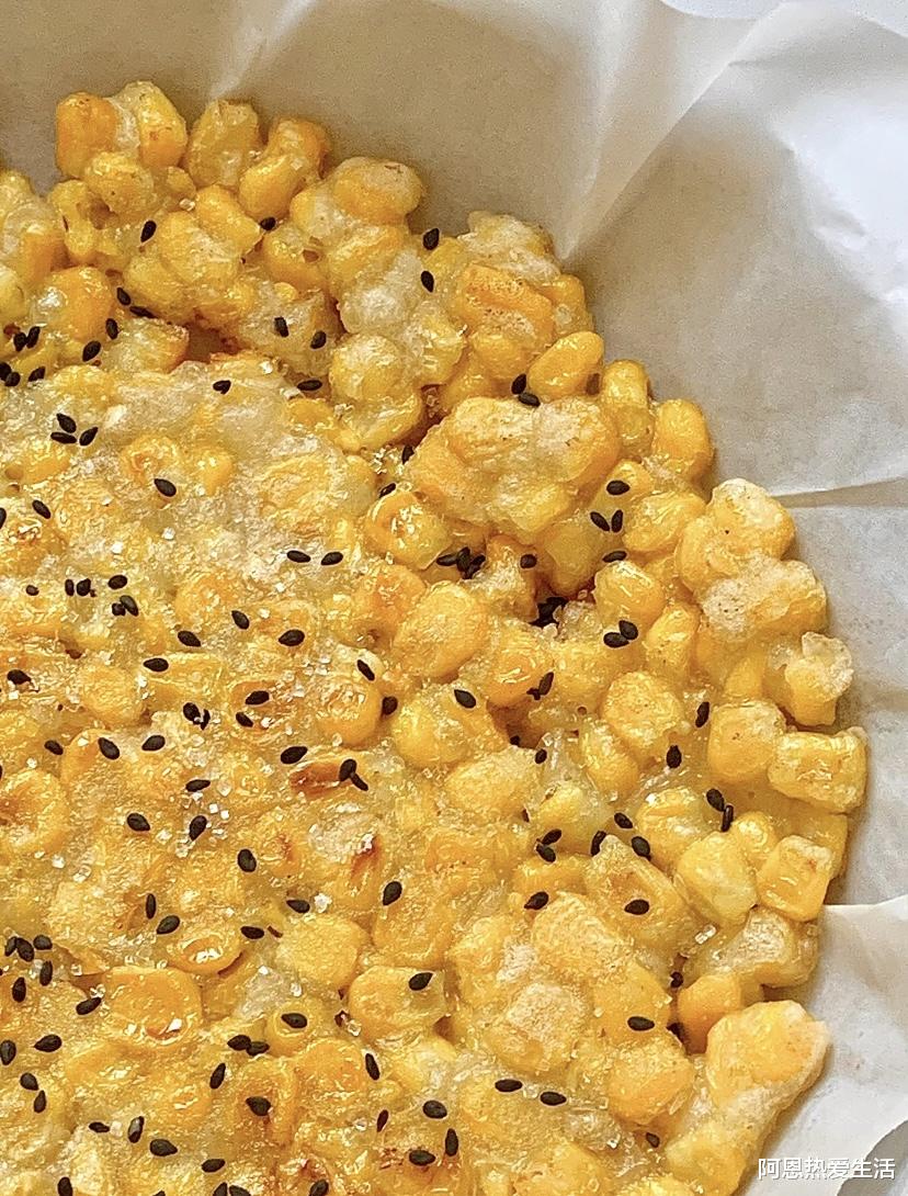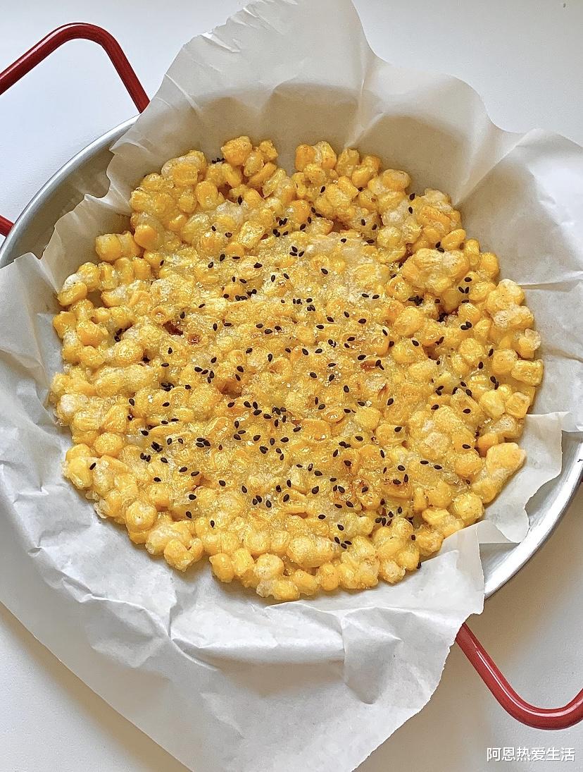 玉米粒洗净后,一定要放在滤网里彻底沥干水分,最好再用厨房纸吸干表面残留的水珠。