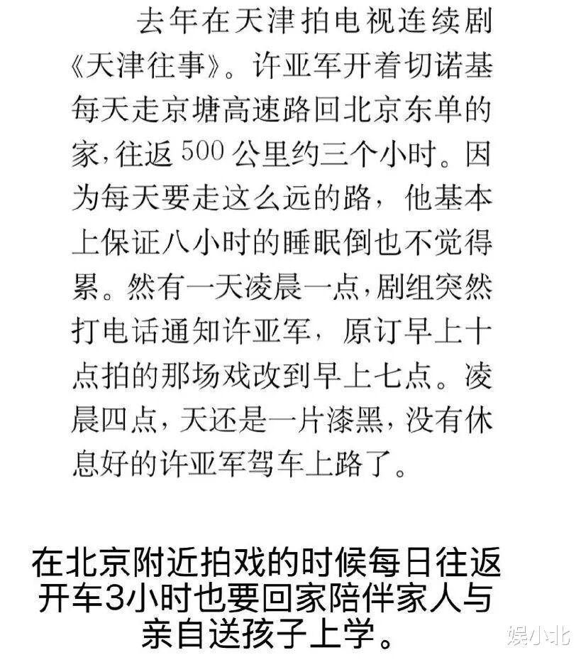 在许何小的时候,许亚军如果在北京周边拍戏,他每天都会回家陪孩子,哪怕每天往返三小时。