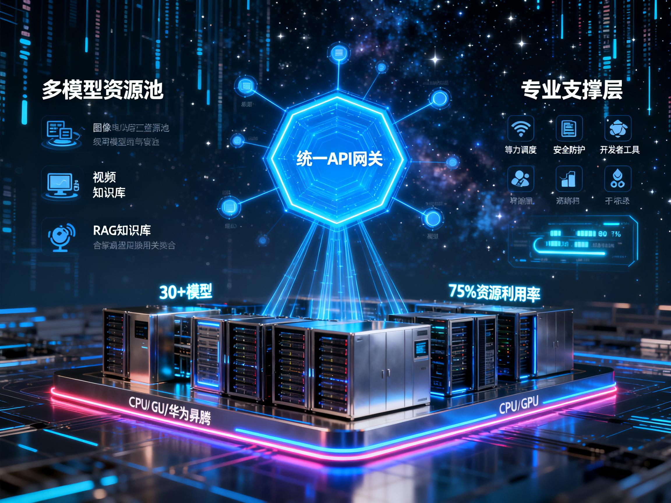 聚合平台的算力资源往往涵盖 CPU、GPU(NVIDIA A100/H200、华为昇腾 910)、TPU 等多种硬件,架构层需通过智能调度系统实现资源利用率最大化:
