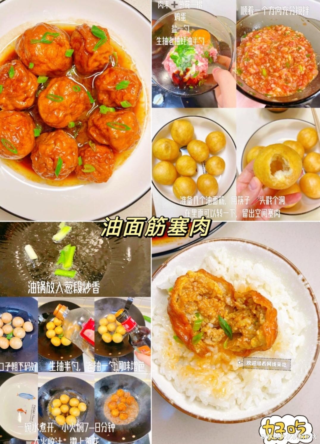 将煮好的油面筋塞肉盛出,可以搭配米饭一起食用。