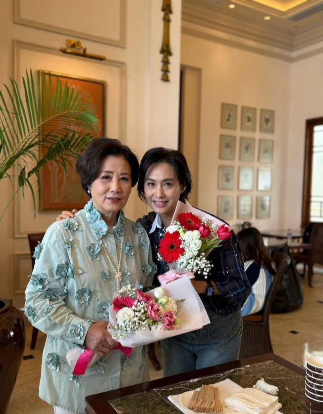 在杀青现场,很多演员都争相和汪明荃合照,看得出剧中汪明荃的造型还是非常富贵的,这次她留了短发,化了妆之后精气神显得不错,在剧中与其演母女的朱茵也是手捧鲜花和汪明荃合影留念,这次在戏里想必二人也是擦出了不少火花。